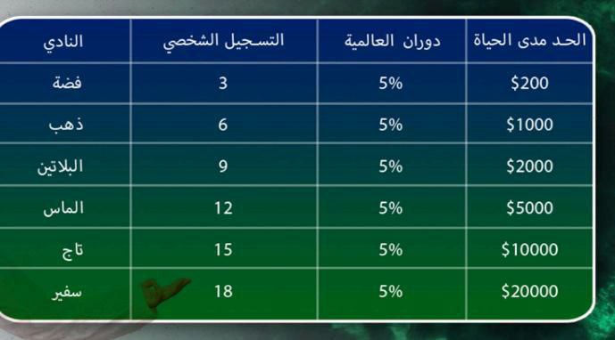 سجل 15 عضوًا أسفلك مباشرةً , تمثل أرباحك 5٪ من مكافأة القوة العالمية ، بحد أقصى للربح يصل إلى 10000 دولار